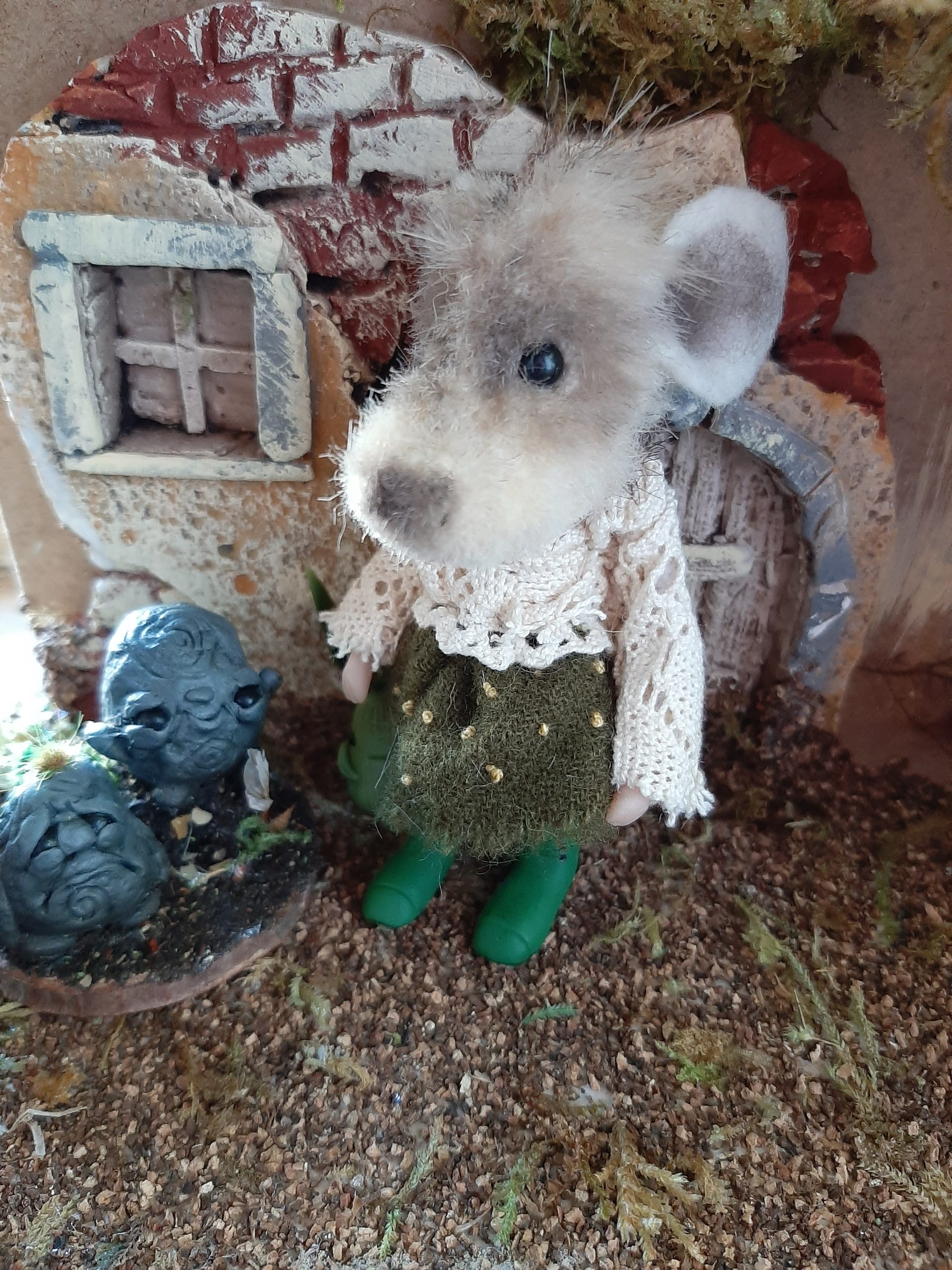 This sweet little mouse loves being outdoors and is always in her green wellies!!