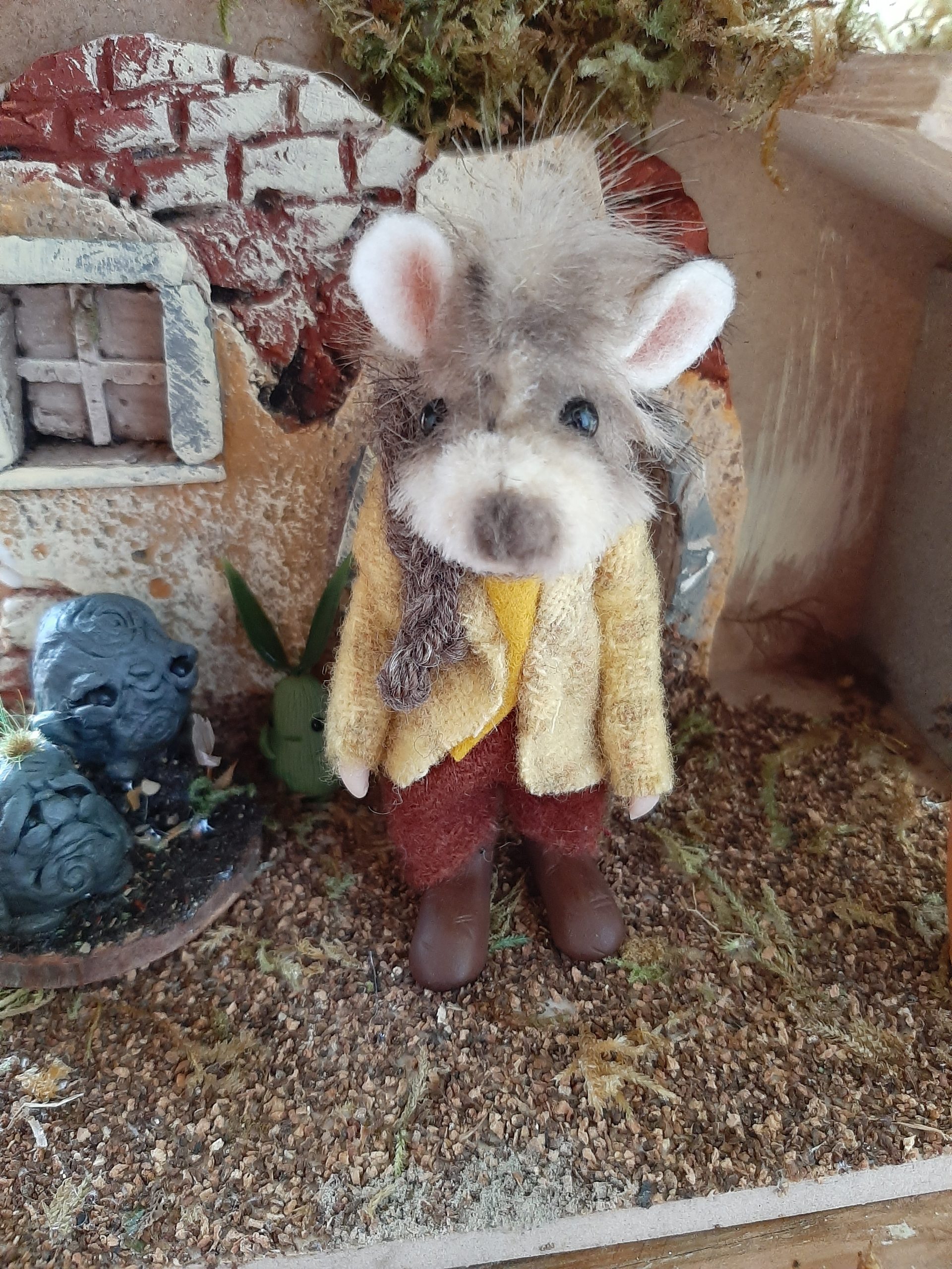 Sid is handmade from various materials including polymer clay and faux fur. His clothes are not removable.